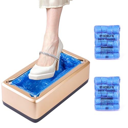 JATHIN - موزع أغطية الأحذية الاوتوماتيكي للاستخدام الداخلي من جاثين مجموعة للأحذية تتضمن 100 قطعة الأغطية البلاستيكية للاستعمال مرة واحدة ودواسة بلون ذهبي