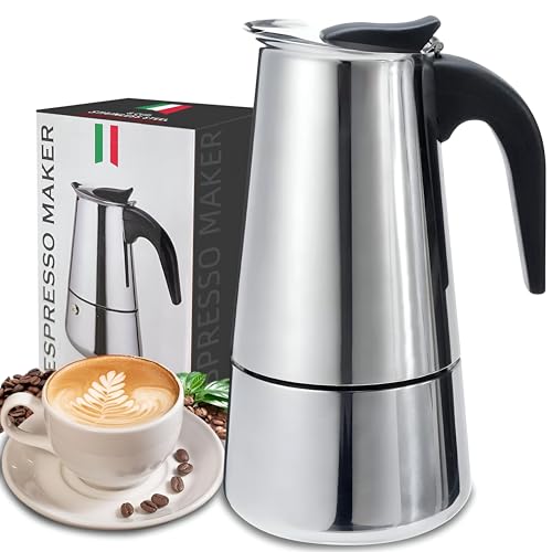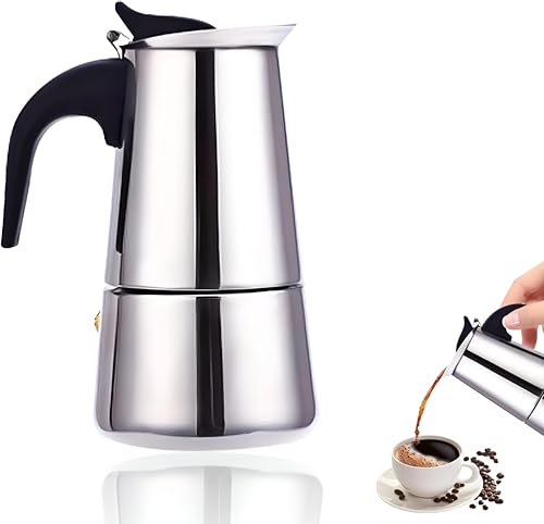 - 【تصميم سهل الاستخدام】: تم تصميم ماكينة صنع الإسبريسو لسهولة الاستخدام: ما عليك سوى ملء الحجرة السفلية بالماء، وإضافة القهوة المطحونة إلى السلة، ثم وضع الجزء العلوي ووضع وعاء الإسبريسو المصنوع من الفولاذ المقاوم للصدأ على الموقد ليغلي. لاحظ أن أحجام 2 كوب (100 مل) و4 أكواب (200 مل) غير مناسبة لمواقد الحث بسبب حجم القاعدة الصغير.