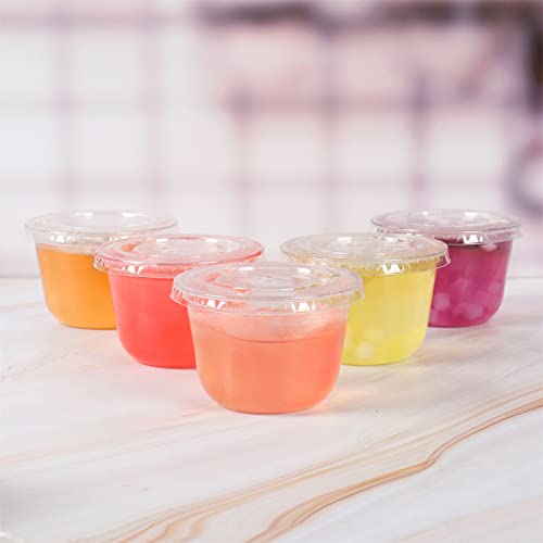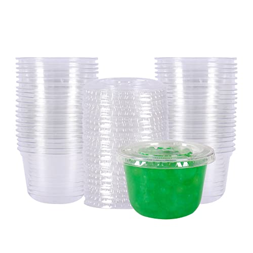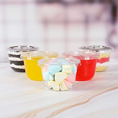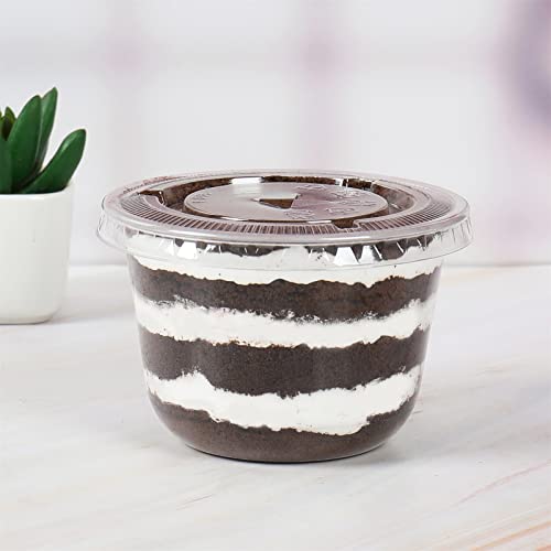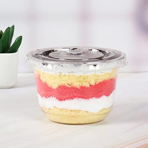 JAYEEY - اكواب بلاستيكية للاستعمال مرة واحدة سعة 10 اونصة مع اغطية مسطحة مثالية للكيك والفاكهة واكواب الحفلات والمشروبات 50 قطعة، البولي بروبلين (PP)