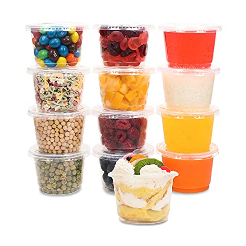 JAYEEY - مجموعة من 200 كوب بارفيه بسعة 8 اونصة وغطاء مسطح، اكواب ايس كريم لحفظ الطعام والحلوى من جايي، بولي بروبيلين (PP)