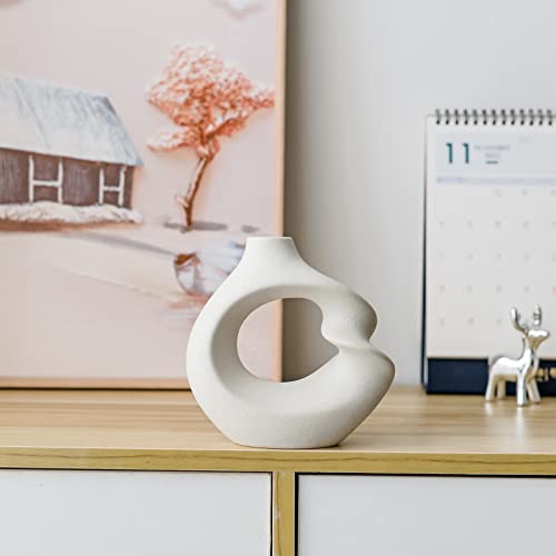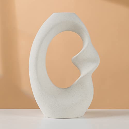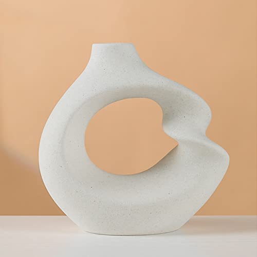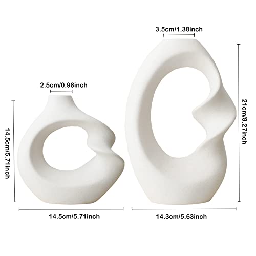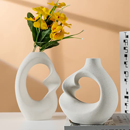 JAYUNSHY - مجموعة مزهرية سيراميك مجوفة، فازة عصرية دائرية للديكور بنمط نورديك بسيط، فازة بنمط بوهو بيضاء للطاولة المركزية لحفلات الزفاف وغرفة الطعام وغرفة المعيشة والمكتب وديكور المنزل من جايونشي، قطعتان (أبيض)