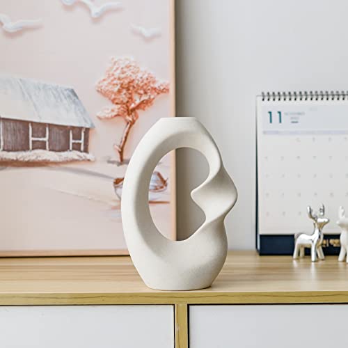 - 【فازة عصرية فريدة】يتميز سطح المزهرية السيراميك بملمس خشن غير لامع، ويضيف التصميم المركزي المجوف واللون الأبيض جمالًا هندسيًا عصريًا لديكور منزلك، ويعكس الشكل الفريد النمط الأوروبي والبوهيمي البسيط، حيث يمكن دمج هذا التصميم مع أي ديكور منزلي.