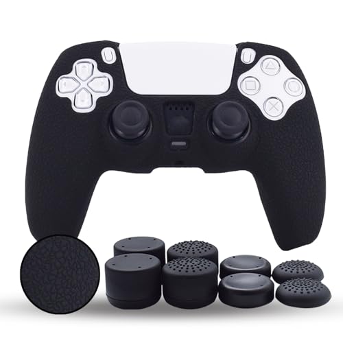 Jazane - جازان مقابض متوافقة مع ذراع تحكم بلاي ستيشن 5، مقابض سيليكون لذراع تحكم بلاي ستيشن 5 مضادة للانزلاق - مع 8 قطع من مقابض الابهام برو - اسود