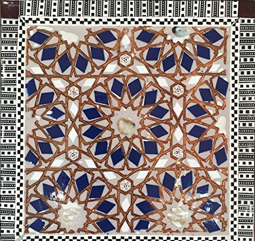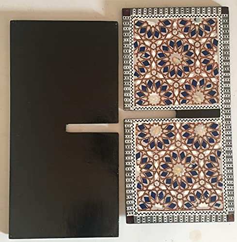 - الحامل مصنوع من الخشب ومزين بترصيع جميل من الصدف الطبيعي بلون أزرق مهدئ لمظهر فريد وهادئ.