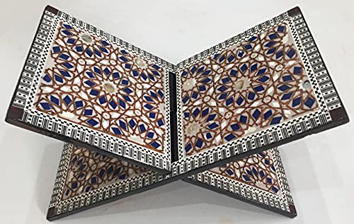 JAZZEEL - حامل مصحف خشبي على شكل صدف ازرق من جازيل - حامل مزخرف مع ترصيع طبيعي مصمم لحمل وعرض القرآن الكريم للقراءة والديكور باحترام