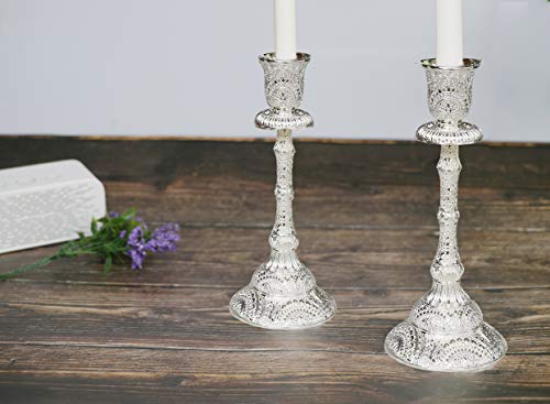 JAZPlayer - حامل شموع السبت مطلي بالفضة مع تصميم منقوش حامل شموع مناسب للمراسم اليهودية من جاز بلاير، فضي