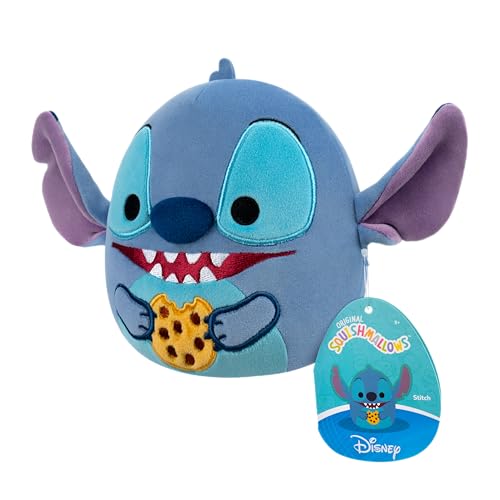Squishmallows - عروسة جازويرز من سكويشمالوز بتصميم الرسوم والصور المتحركة: ديزني - ليلو اند ستيتش - شخصية ستيتش يأكل بسكويت (25 سم) (SQDI01153)