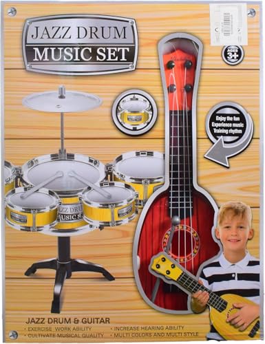 Generic - طقم موسيقى جاز درامز وجيتار للأطفال، آلات موسيقية تعليمية متعددة الألوان، للأعمار 3 سنوات فما فوق
