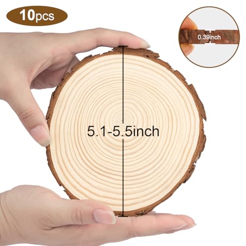JAZZEEL - 10 قطع من شرائح الخشب الطبيعي من جازيل، اقراص خشبية ريفية بقطر 13-14 سم مع لحاء وقواعد اكواب على شكل شجرة للحرف اليدوية وديكور حفلات الزفاف والكريسماس