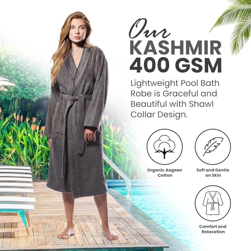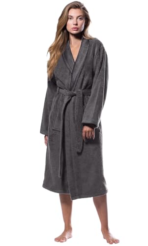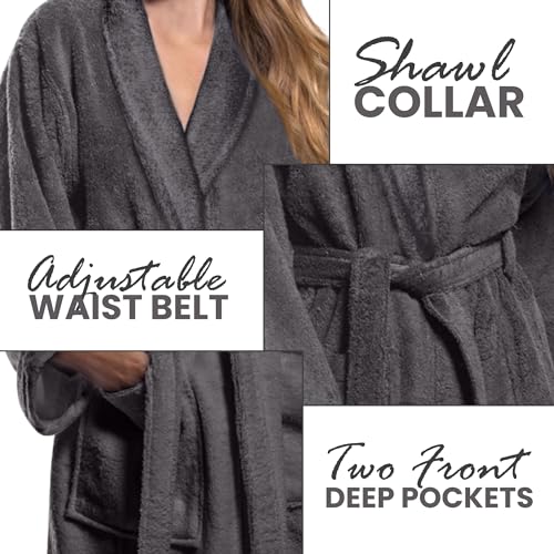 JAZZEEL - روب حمام من قماش تيري قطني 100% للنساء ناعم وماص للعرق للفنادق والمنتجعات الصحية، ملابس نوم دافئة ومريحة مع تصميم ياقة شال من جازيل، رمادي، مقاس ميديوم وسمول S/M