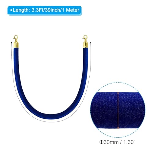 JAZZEEL - حبل تثبيت مخملي ازرق 100 سم مع خطافات ذهبية من جازيل، حبل حاجز للتحكم في الحشود للأعمدة والحوامل، فاصل طوابير للفنادق والمسرح والمناسبات