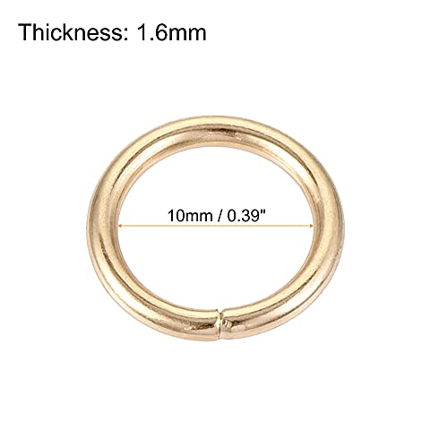 JAZZEEL - مجموعة حلقات معدنية على شكل O بمقاس 10 ملم بسمك 1.6 ملم غير ملحومة باللون الذهبي موصلات صغيرة للزينة للأحزمة والشنط والأعمال اليدوية من جازيل، عبوة 30 قطعة