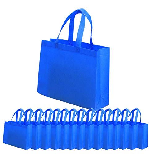 JAZZEEL - شنط كبيرة توت للتسوق كبيرة قابلة لإعادة الاستخدام متينة وقابلة للطي للاستخدام اليومي من جازيل، مقاس 35 × 45 × 12 سم، لون أزرق، 14 قطعة