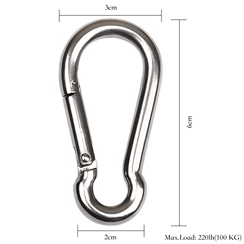 JAZZEEL - قطعتان من حلقات التثبيت M6 شديدة التحمل من جازيل، سلسلة مفاتيح بمشبك من الستانلس ستيل 304 للتخييم في الهواء الطلق والمشي لمسافات طويلة والارجوحة، خطاف متين امن للاستخدام متعدد الاغراض
