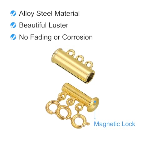 JAZZEEL - مشبك سلسلة متعدد الطبقات، 3 جدائل ذهبية منزلقة بوصلة قفل أنبوبية مغناطيسية، فاصل للسلاسل ذات الطبقات، لوازم صنع المجوهرات لتصميمات الأساور متعددة الخيوط من جازيل، 2