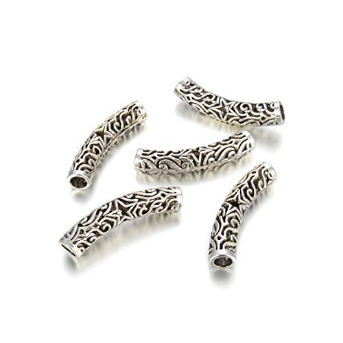 JAZZEEL - 30 قطعة من الخرز الانبوبي المنحني الفضي العتيق من جازيل، موصل نجمة 34 ملم مع فتحة كبيرة 5 ملم لصنع المجوهرات والحرف اليدوية، خرز فاصل، MC-L3