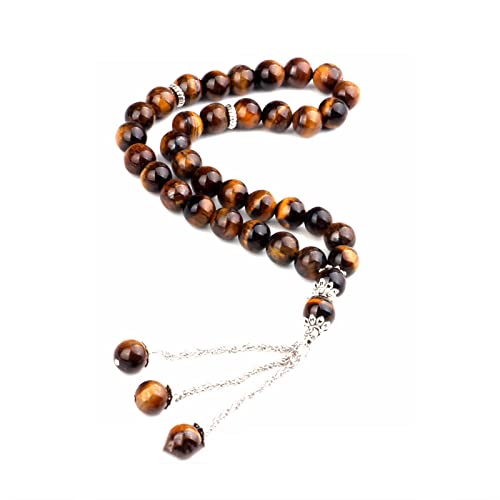 JAZZEEL - سبحة زجاجية اسلامية من 33 خرزة باللون البني من جازيل، سبحة تسبيح الشرق الاوسط للعبادة الاسلامية، تستخدم كديكور معلق واداة لممارسة الصلاة الروحية