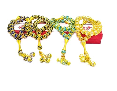 JAZZEEL - مجموعة مسبحة دائرية من حجر الكريستال مكونة من 4 قطع من جازيل، تتضمن مسبحة 9 ملم × 25 سم باللون الاسود والاخضر والابيض والازرق لمجموعة متنوعة وملونة من مسبحة الصلاة