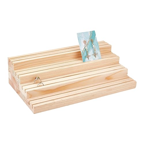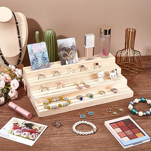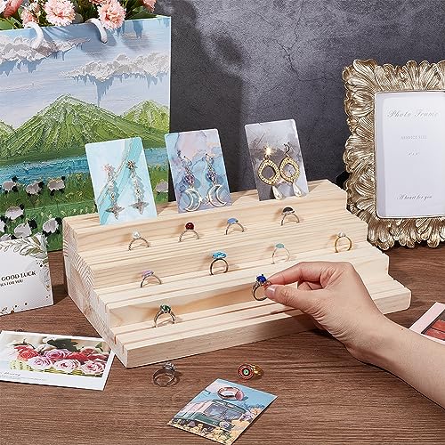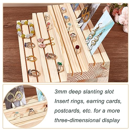 JAZZEEL - حامل عرض مجوهرات خشبي من 4 طبقات من جازيل، حامل منظم حلقان خشبي مشقوق، رف عرض احترافي للبيع بالتجزئة للخواتم والحلقان والبطاقات والصور، ديكورات منزلية لسوق الحرف اليدوية