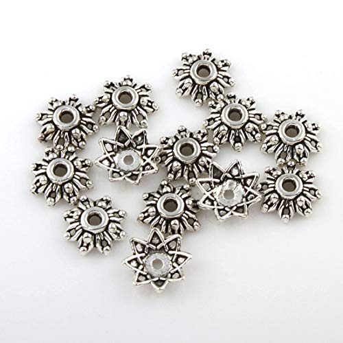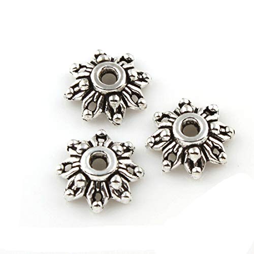 JAZZEEL - 50 غطاء خرز مخرم من جازيل، خرز فاصل معدني 8 ملم بلمسة نهائية فضية تبتية، اغطية طرفية انيقة لصنع المجوهرات وتصميم الاساور والقلائد بنفسك للحصول على نتائج احترافية