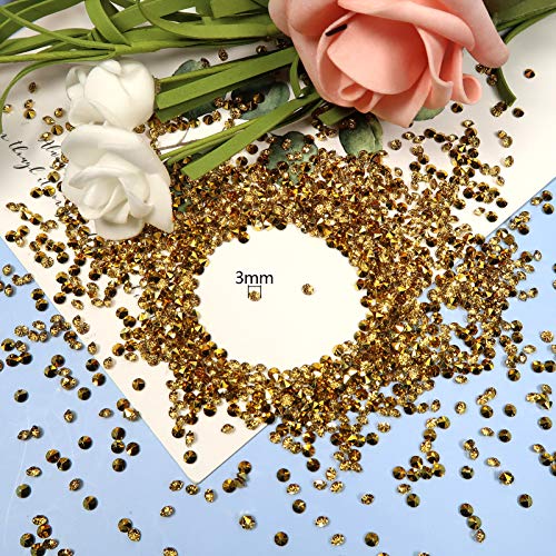 JAZZEEL - شنطة من 5000 قطعة من كريستالات متناثرة للطاولة بلون ذهبي مقاس 3 ملم من جازيل، عبوة كبيرة من الماس الراتنج واحجار الراين لتزيين الطاولة الانيقة، ديكور الزفاف، حفلات الزفاف، والديكورات الحرفية التي
