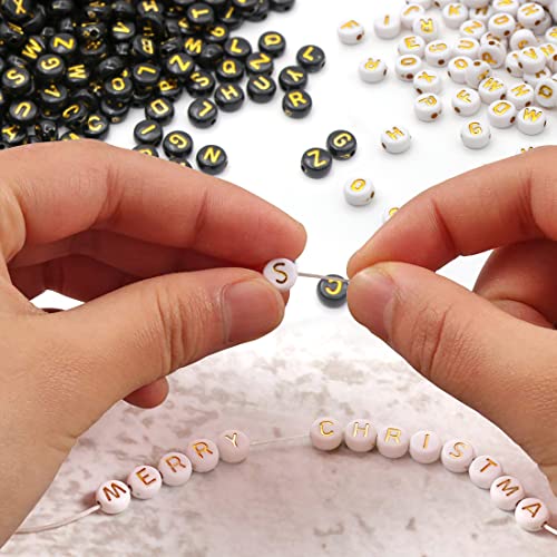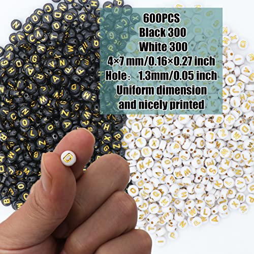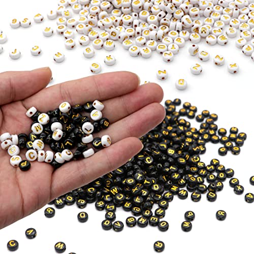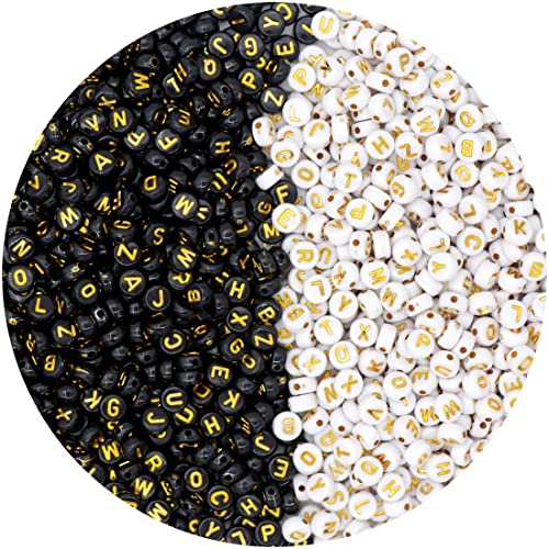 JAZZEEL - خرز الحروف الأبجدية الاكريليك بألوان متعددة، خرز بوني دائري مسطح ذهبي لصنع المجوهرات والأساور والسلاسل وسلاسل المفاتيح وأساور الصداقة الشخصية من جازيل، 600 قطعة