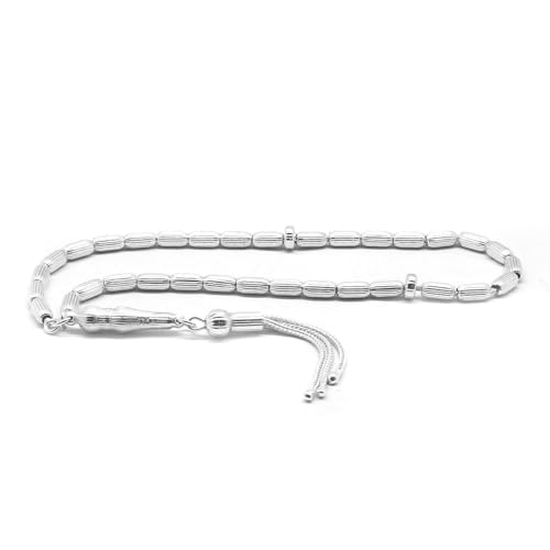 JAZZEEL - سبحة من الفضة الاسترلينية عيار 925 مع خرز محفور بثلاث شرابات بتصميم كبسولة للرجال من جازيل، مسبحة اسلامية للصلاة، هدية روحية لشهر رمضان والعيد والمناسبات الخاصة، 35 غرام