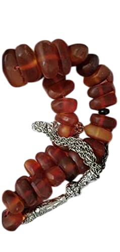JAZZEEL - سبحة من الاحجار الكريمة الكهرمانية من جازيل، مسبحة صلاة 8 ملم، لون عسلي طبيعي للتامل الاسلامي والسبحة الروحية، هدية للرجال والنساء مع شرابة مزخرفة