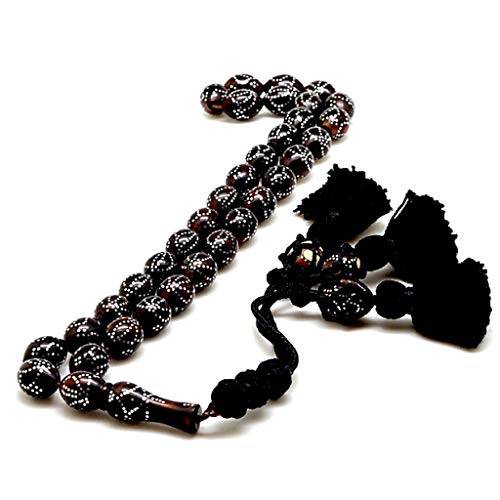 JAZZEEL - سبحة من خشب الكوك الاصلي للصلاة الاسلامية من جازيل، مسبحة كوكا طبيعية 99 خرزة للتأمل اليومي والذكر، سبحة تقليدية للرجال والنساء المسلمين