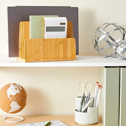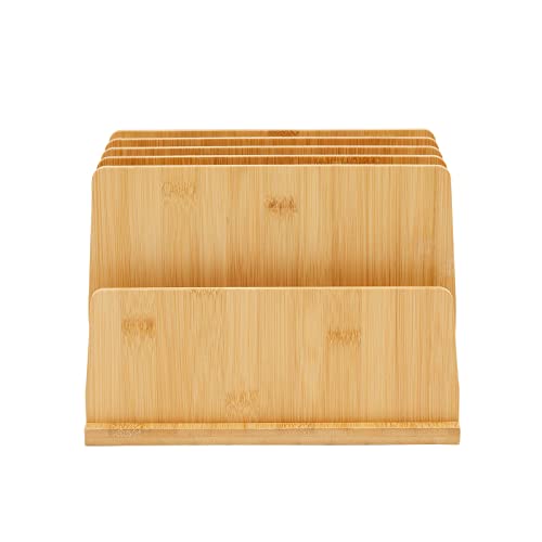 JAZZEEL - حامل بريد من الخيزران من جازيل، منظم ملفات بـ 5 فتحات، 25 × 18 سم، من الخشب الطبيعي، منظم مستندات سطح المكتب لسطح المكتب، رف تخزين مغلفات الرسائل، اساسي قوي للفرز