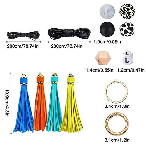 JAZZEEL - مجموعة صنع اساور خرز من جازيل مع دلايات على شكل سيارة وشراشيب جلدية وسلسلة مفاتيح مرنة ومجموعة صنع المجوهرات للحرف اليدوية - 15 ملم - 5 قطع