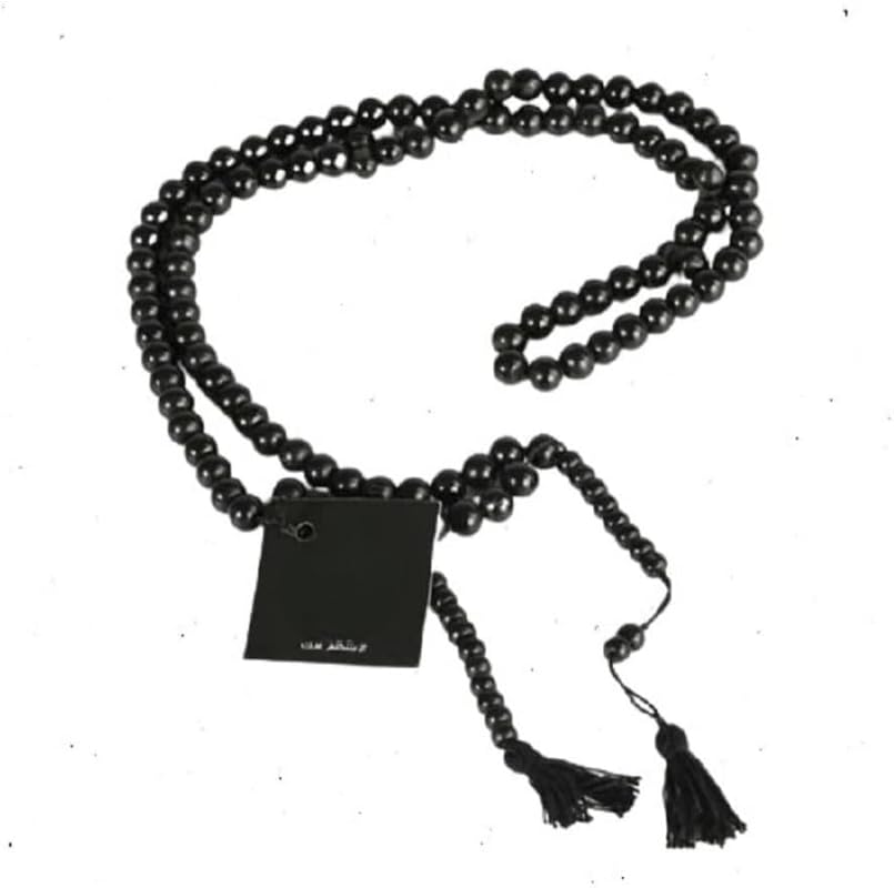 JAZZEEL - سبحة من خشب الكوكا الاسود من جازيل مع 100 خرزة بمقاس 8 ملم للصلاة الاسلامية، تسبيح شجرة كوك اصلية للذكر والذكر، سبحة متينة للرجال والنساء المسلمين