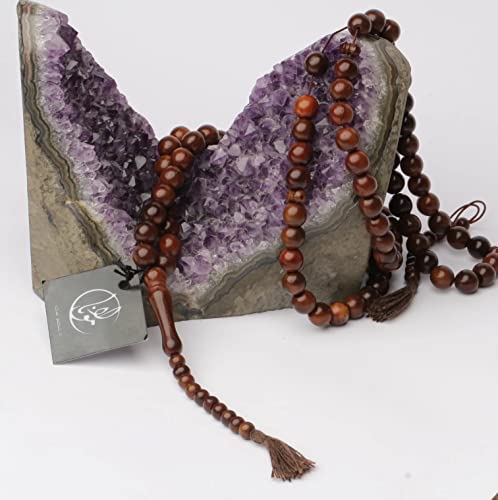 JAZZEEL - سبحة من خشب الكوكا البني مع 100 خرزة بمقاس 10 ملم للصلاة الاسلامية، تسبيح شجرة كوك الاصلية للذكر والذكر، سبحة متينة للرجال والنساء المسلمين من جازيل