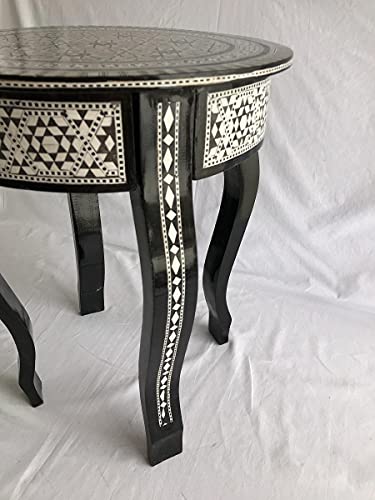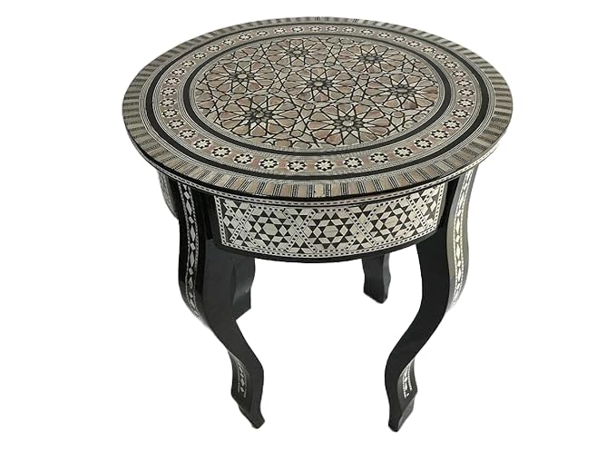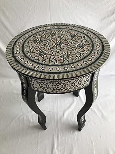 JAZZEEL - طاولة صينية دائرية من جازيل مع ترصيع صدف البحر - طاولة خشبية مزخرفة من سيرجيفتينغ مع لمسات من عرق اللؤلؤ (صدف)، قطعة انيقة وفنية لديكور المنزل