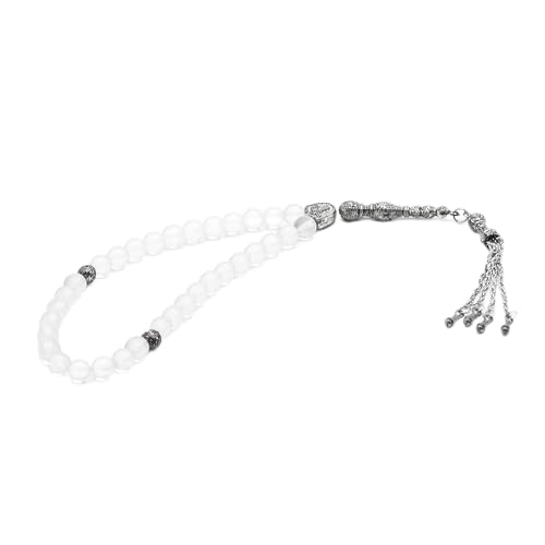 JAZZEEL - سبحة كلاسيكية بيضاء للجنسين من جازيل، مسبحة صلاة مكونة من 33 خرزة مصنوعة من أجل البساطة والتفاني، اكسسوار خفيف الوزن وانيق للذكر الاسلامي اليومي والتامل