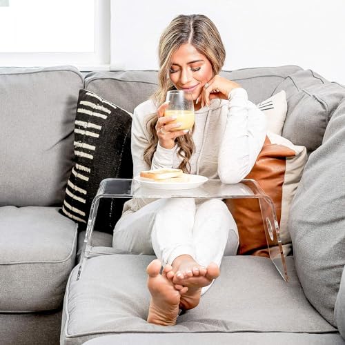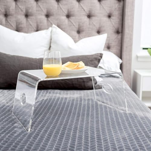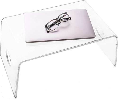 JAZZEEL - صينية سرير اكريليك شفافة بمقابض لتناول الطعام والقراءة والكتابة من جازيل، طاولة لابتوب خفيفة الوزن ومحمولة وحامل لاب توب للسرير والكنبة