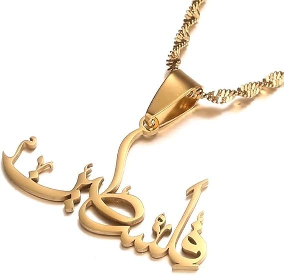 JAZZEEL - قلادة مخصصة تحمل اسم بالخط العربي، قلادة شخصية مطلية بالذهب على سلسلة ملتوية للنساء والرجال، مجوهرات فنية إسلامية أنيقة، مجوهرات عصرية شرق أوسطية مثالية للعيد من جازيل