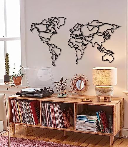 JAZZEEL - ديكور بتصميم خريطة العالم بلمسة نهائية سوداء، لمسة عصرية مستوحاة من السفر لغرفة المعيشة أو غرفة النوم أو المكتب من جازيل، مقاس 40 × 23 سم