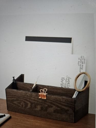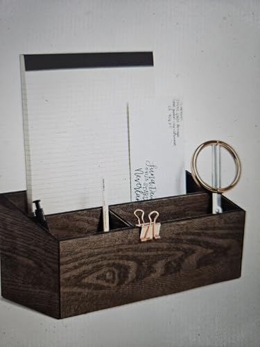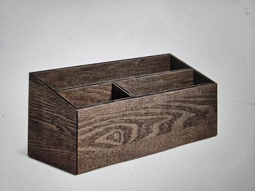 JAZZEEL - منظم تخزين لسطح المكتب من جازيل، 3 مقصورات، 33 × 14 × 13 سم، بني داكن، حامل خشبي للوازم المكتبية، صندوق ترتيب مساحة العمل، رف ملحقات شديد التحمل.
