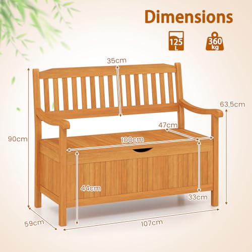 JAZZEEL - مقعد حديقة من خشب الاوكالبتوس بمقعدين مع مساحة تخزين من جازيل، مقعد خارجي مع مسند ظهر ومساند للذراعين، مقعد فناء مقاوم للطقس 107 سم، سعة 360 كغم - لمسة نهائية طبيعية