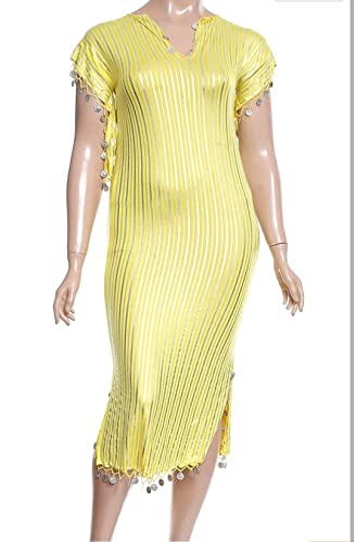 JAZZEEL - جناح رقص شرقي لامع للنساء من جازيل، زي اداء اصفر وفضي، مقاس واحد، زي رقص شرقي كامل للعروض المسرحية والمسابقات والراقصين المحترفين