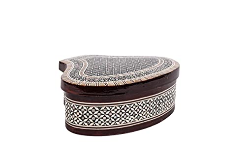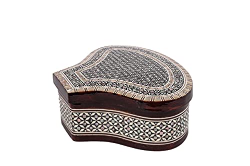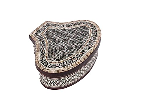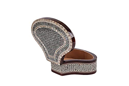 JAZZEEL - صندوق مجوهرات مصنوع يدويا من الخشب ومزين بصدف اللؤلؤ بنقش خاتمكاري إسلامي فاخر مناسب لحفظ المقتنيات الثمينة وتنظيمها بتصميم زخرفي راقي يشبه صندوق الكنوز من جازيل