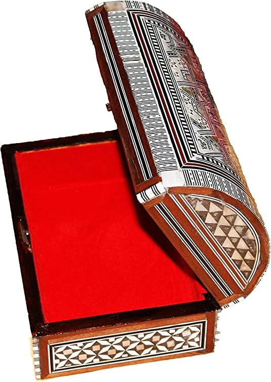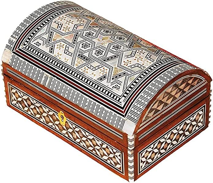 - ترصيع سادافت رائع: مزين بفسيفساء عرق اللؤلؤ الأصلية، يعرض هذا الصندوق تصميمًا مضيئًا يدويًا وهو حقًا عمل فني.