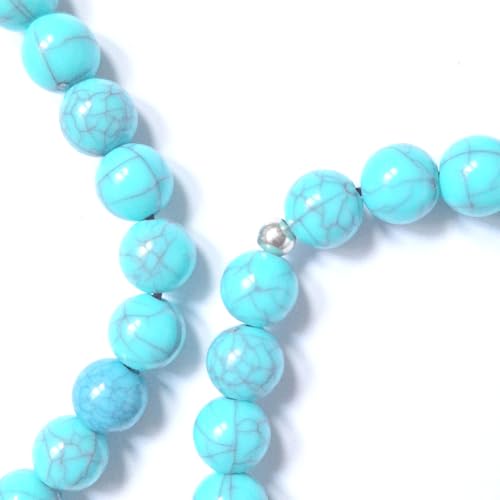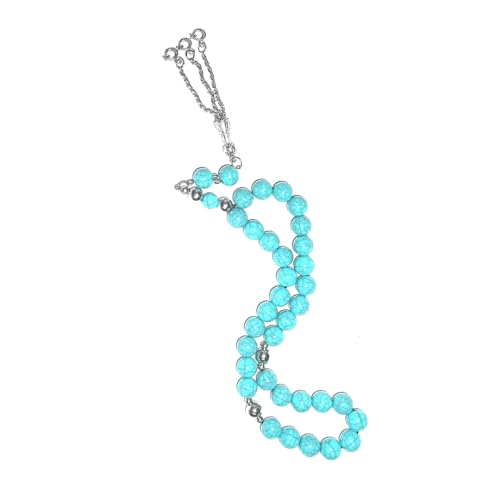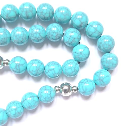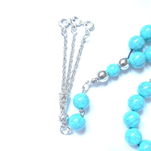 JAZZEEL - سبحة فيروز مصنوعة يدويا مع فواصل معدنية من جازيل، 33 خرزة 8 ملم، لون تركواز للتأمل اليومي والسلام والايجابية، سبحة اسلامية روحية، هدية للرجال والنساء