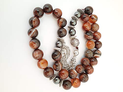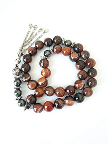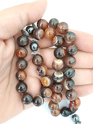 JAZZEEL - سبحة من حجر العقيق الاسلامي مع خرز مغناطيسي للرجال من جازيل، مسبحة من 33 خرزة للصلاة للذكر والتامل، هدية فاخرة للشفاء الروحي لشهر رمضان والعيد