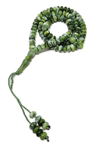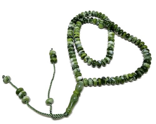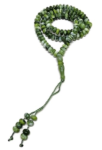 JAZZEEL - سبحة صلاة اسلامية مع 99 خرزة خضراء مع شراشيب زخرفية من جازيل، مسبحة ذكر اسلامية هدية لشهر رمضان والعيد للرجال والنساء، اكسسوار صلاة روحي