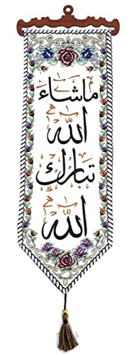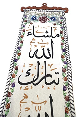 JAZZEEL - بساط حائط اسلامي من جازيل، قماش معلق بخط القرآن الكريم، ماشا الله، 25 × 80 سم، ابيض، ملصق ديكور منزلي للمسلمين، هدية دينية للعيد ورمضان