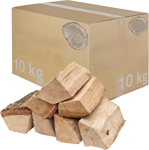 JAZZEEL - حطب خشب البلوط المجفف في الفرن من جازيل (عبوة 10 كغم)، خشب صلب جاهز للحرق بطول 25 سم للمواقد والمواقد وحفر النار والشواء عالي الكفاءة، محتوى منخفض الرطوبة