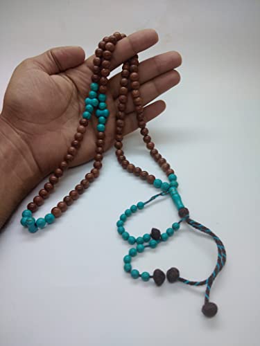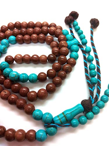 JAZZEEL - سبحة من خشب الكوكا مع لمسات من الفيروز الطبيعي من جازيل، 100 حبيبة مع 2 عداد تسبيح على الطراز الافريقي للصلاة الاسلامية والذكر الروحي هدية التامل للرجال