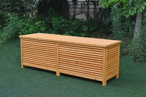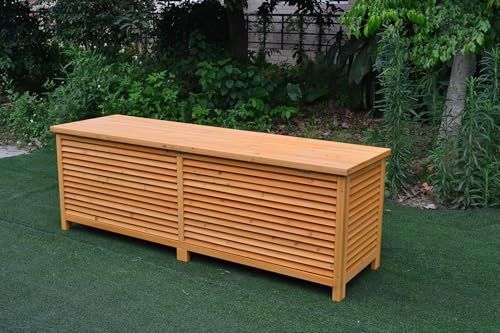 JAZZEEL - صندوق تخزين خشبي كبير للأماكن الخارجية مع غطاء قابل للطي (170 × 50 × 58 سم) من جازيل، وسادة واسعة وصندوق أدوات الحديقة مع غطاء واقي لتنظيم الفناء والحديقة